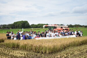 匝瑳市の「そうさの米研究会」は9月14日、船橋市の米販売専門店と協力し、匝瑳市今泉の田んぼで消費者による稲刈り体験イベントを開きました。